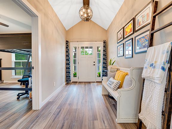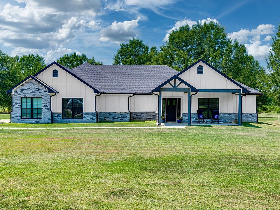 Built in 2021, this modern farmhouse offers 2,108 sq. ft. of custom construction on 1.9 acres in a desirable country setting. This 3 bedroom, 2.5 bath home features an open-concept layout with vaulted ceilings, a gas fireplace, and wall-to-wall windows overlooking the private backyard.