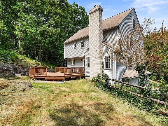 Distinctive, well maintained colonial on private 3.62 acre lot awaits new owners. You'll love the traditional layout with a nod towards the transitional. Spacious, cabinet packed, eat-in kitchen has tiled floors and is open to the family room with wood stove and living room; both with hardwood flooring. Dining room also has hardwood floors. Half bath completes the 1st floor. Oak stairs to second floor offers convenient laundry hook ups and full main bath abutting spacious bedrooms with new carpeting. Primary suite has walk-in closet & full bath with double vanity. 2nd floor office with hardwood flooring and access to walk up 3rd floor for future expansion. Light filled rooms throughout. 2 car garage. Enjoy your summer reading on the expansive deck surrounded by nature & wildlife. Convenient location to route 395. Such a tranquil place to call home!
