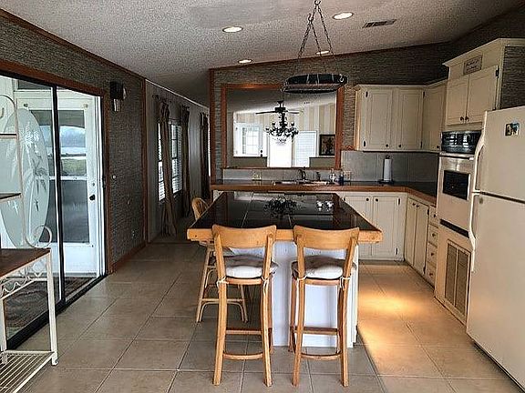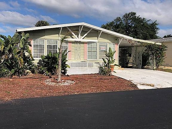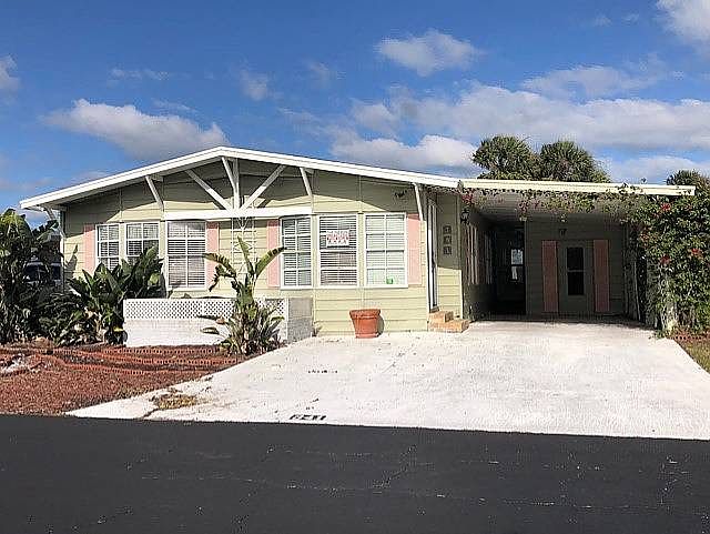 You can't get a better view of the intra coastal than from the deck or the River Room of this home. From the moment you walk into this home you will see the river, the boats go by, the dolphins swimming and the peace of the water. From the long living room go to the kitchen with its high counter to watch the river or move into the "River Room" with all windows, comfortable furniture and enjoy. With 1512 Sq ft including 2 large bedrooms. and an additional 240 Sq ft to the sunroom its roomy. Needs some updates to give you the opportunity make it yours. Owning this home in this park, means no Homestead taxes as you pay it in the lot lease. Located in the Hacienda del Rio a 55 plus premier community with lots to do . It sits on the Intracoastal waterway, fishing, boat launch, 2 clubhouses, 2 pools with hot tubs , workout gym, pool room, tennis, and pickle ball courts and lots of events. Resort style living with a fun lifestyle. Call for info or a showing or any questions.