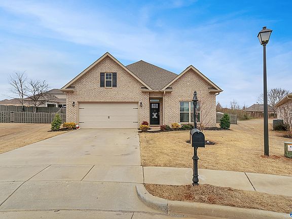 Move in ready brick home on a cu de sac zoned for Madison City Schools! This meticulously maintained full-brick home features 4 bedrooms 2 bathrooms, offering a modern kitchen with stainless steel appliances, granite, crown molding and luxury LVP flooring throughout the entire house. NO CARPET! The open floor plan seamlessly connects areas, creating an airy atmosphere that is perfect for entertaining guests. Step outside to the covered patio which leads to the extended patio with space for dining and grilling while overlooking the privacy fenced backyard. Property also includes 10X10 tuff shed painted to match the house with built in shelving for additional storage.