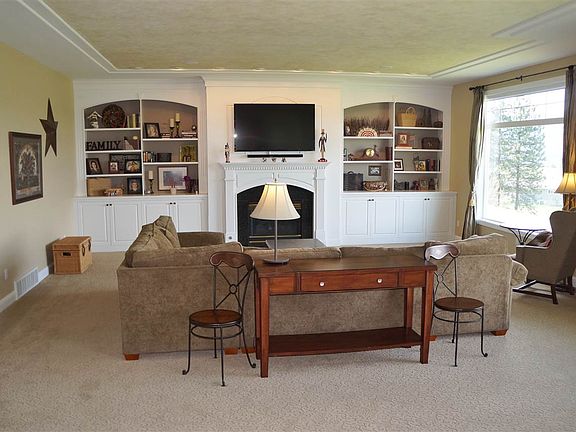 EXCEPTIONAL QUALITY, location and views! Custom home on 10+ acres with all the amenities. Sunken formal living room with FP & custom cabinetry, and a formal dining room for holidays. Kitchen with granite counters, gas range, sub-zero refrigerator, and more. Expansive master suite with sitting room and beautiful bath with large walk-in closet and jetted soaking tub overlooking the valley. Don't miss the basement family room and expansive patio for entertaining, paved driveway, two 2-car garages plus a shop.