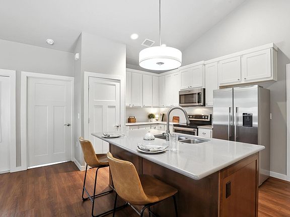 Earthwerx vinyl plank flooringCustom blindsQuartz countertopsModern kitchenSmall fenced in yardStainless energystar appliancesCovered front porch