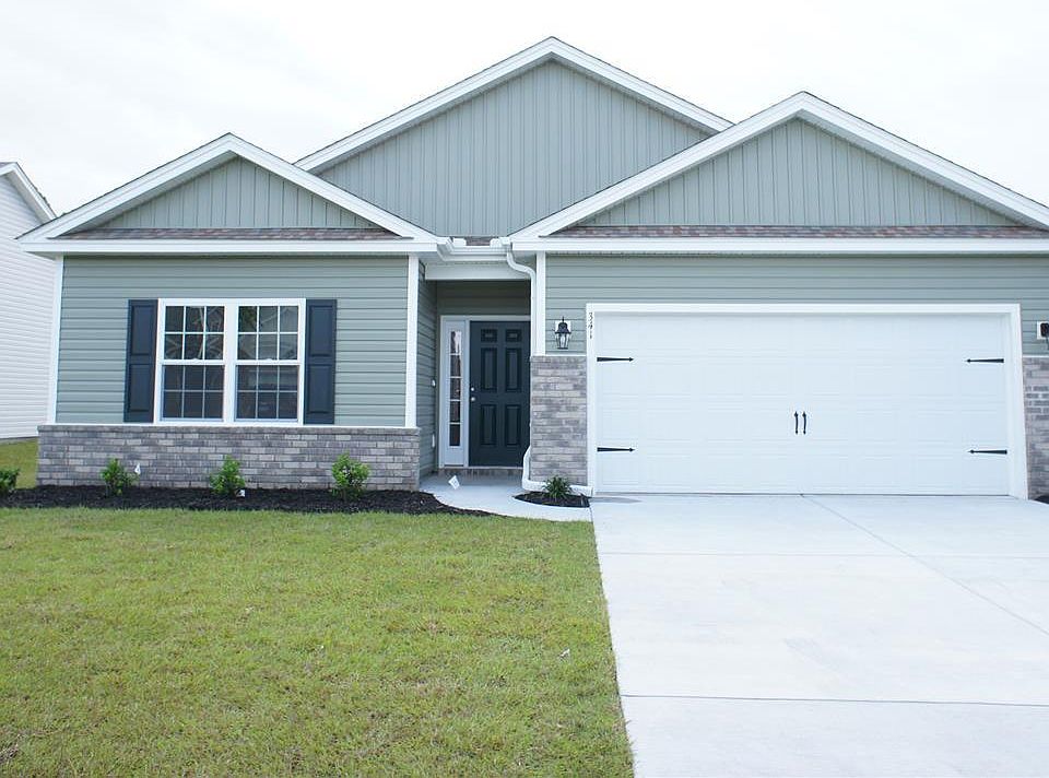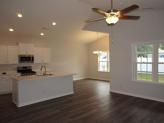 Beautiful Topsail floor plan in the new Ocean Palms community, currently under construction and schedule for completion in mid-November. This terrific open floor plan, 3 bedroom, 2 full bath home will have grey wood-look waterproof laminate flooring in the family room, kitchen and dining area, under the soaring vaulted ceiling, and comfortable carpet in the bedrooms. Stainless appliances, staggered-height white Shaker-style cabinetry and white quartz counters on the convenient breakfast bar combine to give you the wow factor you're looking for, and abundant recessed lighting plus two large windows in the adjacent dining area flood the room with light. A French door in the dining room leads to the covered rear porch and the large separate patio beyond. The spacious owner's suite features a long vanity with double sinks, an oversized walk-in shower, a whirlpool tub, plenty of storage in the linen closet and a huge walk-in closet, plus a tray ceiling. Two additional bedrooms and a full bath are tucked off on their own hallway, for privacy. All of the homes in Ocean Palms come standard with the luxury of natural gas (tankless water heater, gas heat, and gas range). The two car garage is completely trimmed and painted, and a floored attic storage space is accessed by drop-down stairs. Ocean Palms is conveniently located near shopping, restaurants, schools and world class medical offices and hospitals, and only a short golf cart ride to Surfside Beach's gorgeous beach and the beautiful Atlantic Ocean. Other floor plans and inventory homes may be available, and CUSTOMIZATION OF FLOOR PLANS IS POSSIBLE!!! Community Pool and Cabana are now open! Photos are of a completed, similar home and may have different features.