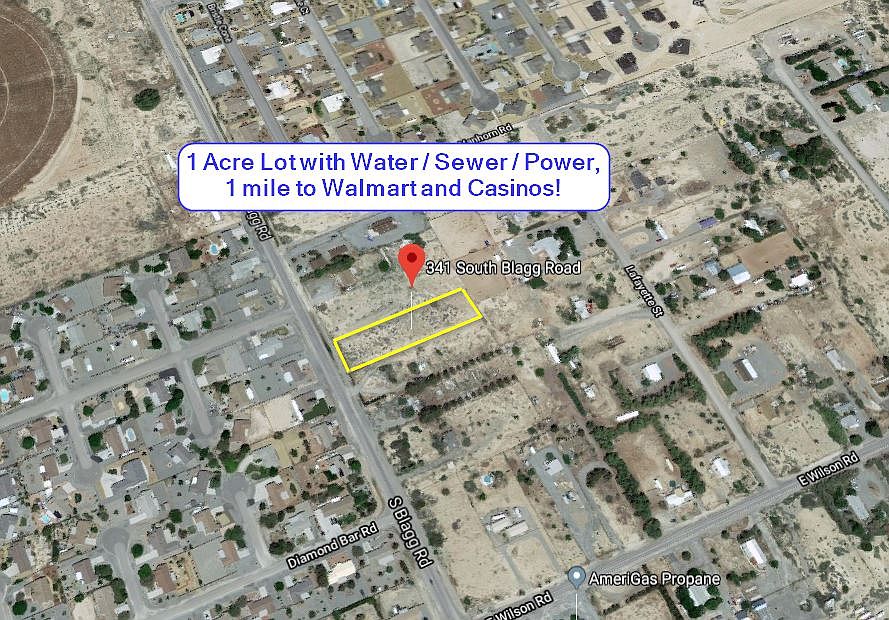 Pahrump, NV - 1 Acre Lot with WATER / SEWER / ELECTRIC to Property, 1 mile to Casinos and Walmart in prime location! Easy owner-financing available, call or text the property owner, Kevin Corcoran. Contact information and website link can be found at the bottom of this page called: "See listing website". This lot has water and sewer to the property line and needs to be annexed into the Great Basin Water District (water utility serving the area) to be entitled to these services, please visit the listing website for complete cost details. SIZE: 1 AC, 105' x 395'. PARCEL NUMBER (APN): 035-321-13. Beautiful 1 acre lot one mile to Walmart, casinos, shopping, banking and nightlife, plus state-of-the-art Desert View Hospital only 2 blocks away! Property has new subdivision homes across the street, has water, sewer and power to the property line and is turn-key ready for a manufactured home or stick built house. The lowest-priced comparable 1-acre lot on Zillow is two blocks north and listed for $75,000! Get this property today and hold for investment, place a manufactured home on it, or build your dream home!