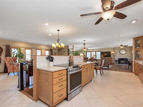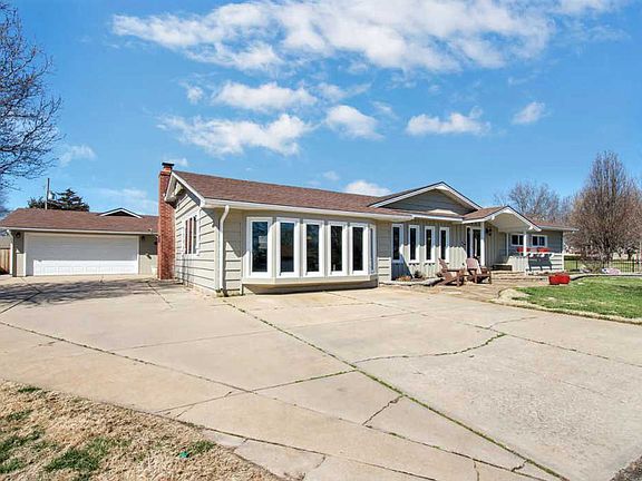 STOP EVERYTHING!!! Make your appointment today for this hidden gem on Wichita's West side. This home on a 1/2 acre lot will amaze and surprise you!! One step through the door, you will see this one is not what you expected. The flood of natural light from the large windows on this open floor plan with living room, dining room, family room and kitchen is perfect for entertaining. Wood and Ceramic flooring, so easy for clean up. Solid surface counters are so clean and sleek. Professional artist created stained glass cabinet fronts and stained glass touches and features around this amazing home. All kitchen appliances stay including the new french door refrigerator. The living room has a fireplace with pellet stove insert to keep you cozy on a cold evening. Down the hall you will find a gorgeous, updated guest bath, 2 bedrooms and then the spacious master bath suite with designated laundry area. The basement has a area for a Rec. room and game room. Also a large storage room. You can enter the backyard from the living room or the master bedroom suite. Additional outdoor living space at its finest!! You will find the in-ground pool that has an efficient variable speed pump that is only 2 yrs old. Large covered patio with electricity for the most intimate or large gathering for summer time FUN FUN FUN!! Complete privacy fenced. The 3 car detached garage is over-sized to fit any hobby your heart desires. Plus a extra storage shed. Irrigation well and sprinkler system too. HVAC System is under a year old. Refrigerator and stove 2 months old. All newer windows. Plus the seller has offered a Choice home warranty for your peace of mind. Call today for your personal tour!