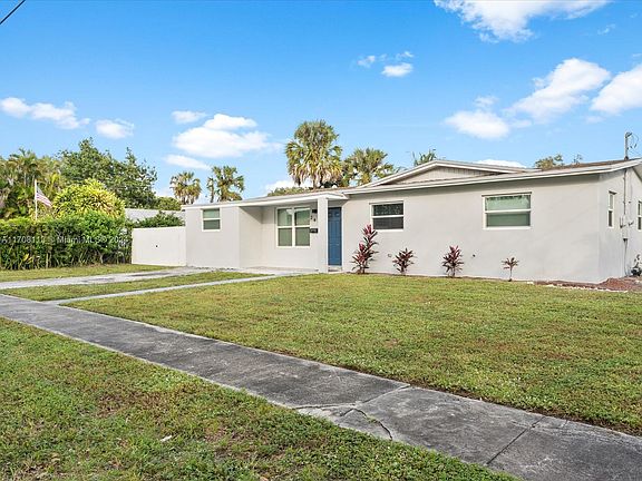 A unique property for families or couples. Enjoy the excitement in this fully remodeled 4 bedroom 3 bathroom home with a HUGE backyard consisting of a brand new pool, sitting areas and expansive turf for outdoor games. Ideal for entertaining, the open floor plan features renovated kitchen and bathrooms, wood-look porcelain floors, and LED lights. The new kitchen has soft close cabinetry, quartz countertops designed for cooking with plenty of storage space and SS appliances. Super close to Publix, unique cafes and shopping centers. Enjoy the privacy of a fenced backyard. Discover the epitome of comfort and style in this meticulously crafted residence.