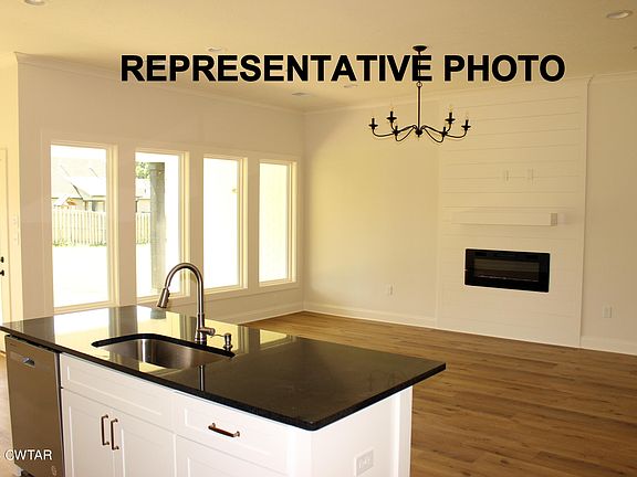 New Farm House design with wrap around front porch + covered patio in Steeplechase. 4 Bedrms, 2 Baths, open floor plan with no wasted space and spacious rooms. All the amenities of much more expensive homes in the area including all LVP flooring and ceramic tile (NO CARPET), shaker cabinets with soft close doors and drawers, granite counter tops throughout, stainless appliances including gas range/oven, kitchen island overlooking great room, split bedroom plan, Primary suite with double vanities, separate shower, soaking tub & commode room