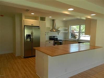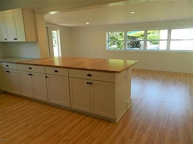 This home has been renovated from top to bottom. Beautiful open floor plan. Brand new everything! New electric, plumbing, roof, kitchen, baths, laundry room, windows, flooring, landscaping and more. Frigidaire Gallery stainless appliances, granite countertop with butcher block breakfast bar. Hand scraped look laminate throughout. Smooth coat ceilings. Huge owner's suite large walk-in closet. Come see this modern beach cottage now. You will fall in love!