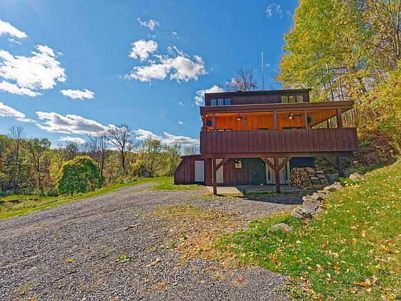 Once in a lifetime listing! This beautiful sprawling sportsmans paradise is situated on 31 acres full of ATV or hiking trails. Detached two car garage features separate 560sq ft apartment or in law space that is fully finished with a bedroom and full bath and porch. Custom hunting cabin situated in the woods for all your outdoor fun. Two ponds and four streams also on property. Main house is a three story custom hybrid timber frame construction featuring four bedrooms and two and a half bathrooms. Fully screened deck for all your entertaining off the second floor. Beautifully crafted rustic master suite with full bath featuring stone and wood from the property. Several forms of heat in the main house, two woodstoves, ductless split heat/ac, propane wall units and electric heat for backup.