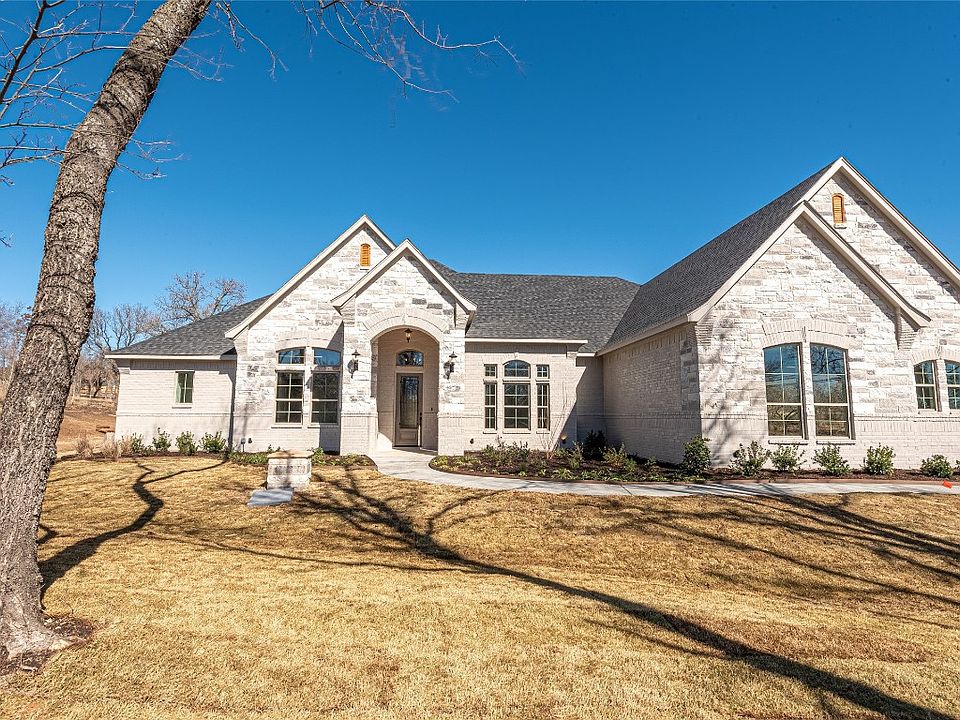 Stylish New Custom 4 Bedroom Home by Terrina Homes in one of Weatherford's newest country subdivisions on a beautiful treed lot with a Spring Fed Pond! Absolutely perfect open floor plan including a breathtaking kitchen with designer lighting, quartz counters & stainless steel appliances. Enjoy the spacious great room with dramatic floor to ceiling fireplace overlooking the large back patio and country views beyond. Relax in your private master suite that includes a master bath you'll love; corner soaking tub, roomy dual vanities & the master closet of your dreams! 3 more spacious bedrooms plus almost 2 acres and energy efficient foam insulation.