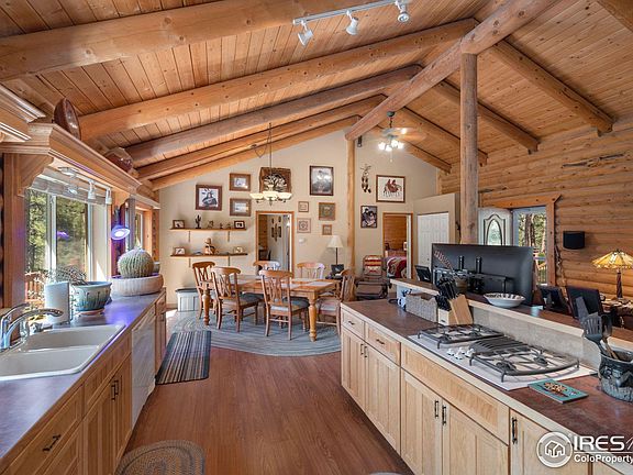 Imagine waking up to cool, fresh mountain air and spectacular views! Escape to Storm Mountain and enjoy the views & wildlife from this move-in ready log cabin in Drake! Situated on 1.8 acres of mountainside property you can bask in the natural beauty that surrounds you. Covered front porch with deck for main access. 1400 sq ft of main level living with 3 beds, 2 baths, open concept with vaulted wood ceilings and wood burning stove. Private primary retreat on one side with two large bedrooms on the other side. Large primary has a walk-in closet, private bath and laundry attached. Two bedrooms have a shared full bath, perfect for guests. Walkout deck from the kitchen is perfect for grilling up a delicious meal or sipping your morning cup of coffee and watching the abundant wildlife that lives in the area . Great access to Loveland or Estes Park. Whether it's your vacation getaway or full-time residence, you can enjoy all the comforts this property has to offer while taking advantage of nearby climbing, hiking and reservoir access. Don't miss this one!