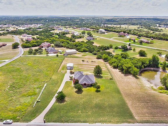 Welcome Home! This beautiful 3 BR 2.5 bath custom home sits on 6 Acres in a private community just minutes from Fort Worth and Granbury. This home is perfect for entertaining. The heart of the home is its fabulous kitchen with custom cabinets, island gas stove, and built-in GE Monogram refrigerator. Home features include beautiful flooring, crown molding throughout and a gas fireplace. The Master BR offers a walk-in shower, garden tub, dual sinks, and large walk-in closet. There is abundant space throughout the home, including a 3 car garage and a 30X24 insulated shop with 220 Electric. Outdoor serenity is what you will enjoy the most, with abundant wildlife, a beautiful pond, and gorgeous views.