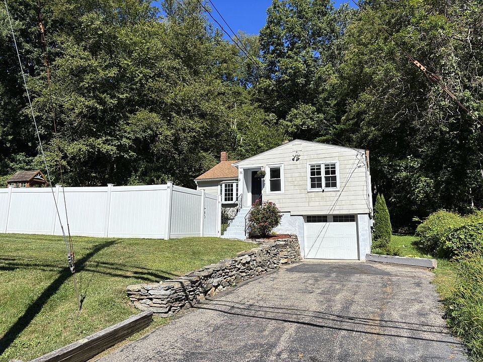 Welcome home to this adorable, 3 bedroom, 1 full bath, 1,040 sq. ft. ranch style home set on a picturesque .51 acre lot framed by stonewalls. Step inside to find an updated eat-in kitchen featuring newer shaker style cabinets, stainless steel appliances, a gas range, granite counters, c/tile backsplash and under cabinet lighting. The kitchen flows seamlessly into the spacious family room with hardwood floors, custom built-ins and a large bay window that fills the space with natural light. Three generously sized bedrooms and an updated full bath provides comfort and functionality to this wonderful home. The one car under house garage, unfinished basement, and two driveways for added convenience are great features to this amazing property. Outdoors, you can enjoy a private backyard retreat with a storage shed, playscape, chicken coop, apple tree, grapevines, and black raspberries perfect for gardening and play. Upgrades include a new septic system, updated electrical, water heater, vinyl fencing, ductless mini splits, and generator hook-up. Ideally located close to parks, Coventry Lake, restaurants, and just minutes to UCONN, and Storrs Center, this home combines modern updates with charming character in a sought after location. Come check it out, you'll be glad you did! You won't want to miss this one.