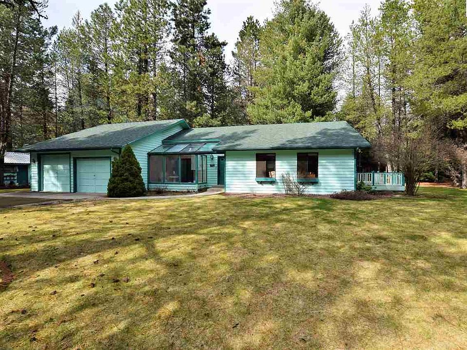 Come see one of the most beautiful serene locations in Sagle. This one-level, 4 BR, 2.5 bath, 2,132 SF home is exceptionally situated on a gorgeously wooded lot that is fully fenced and nearly an acre of usable property! A great mix of large evergreen trees and flat open lawn. It has everything! Amenities include family room, living room with wood stove, master suite, formal dining room, atrium sun room, large bedrooms, 2 car attached garage with additional office, plus a shed and wood storage! Sprinklers, RV parking, huge attic with storage and much more.
