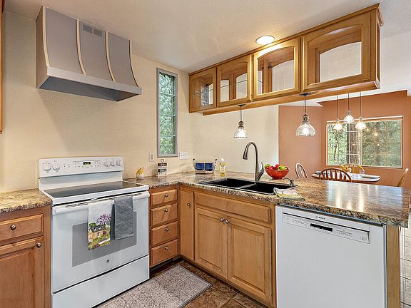 Serene, peaceful setting on 2.65 acres with a seasonal creek: close to shopping and all amenities. Featuring a spacious Cape Cod with 2 bedroom, 2 baths and large family room, updated home with 2,076 sf. Living room has cozy wood stove and sliding door to the deck. A beautiful wooded setting with everything that nature has to offer. Remodeled kitchen and baths; newer paint, roof and deck. Grand master with two walk in closets and adjoining family room with large deck. Large laundry/mud room and attached garage. Detached shop is approximately 1,056 sf with roll up door, 220 power source and RV carport with hook-ups. You'll love spending time in the screened in gazebo; perfect spot for relaxing with a good book. Low maintenance landscaping with sprinklers, a fenced garden area and paved driveway. Peaceful neighborhood at the end of a cul-de-sac. Convenient to shopping and hospital. Put this one on your list to show.