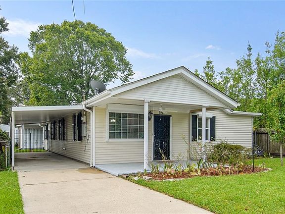Precious 3 bdrm / 2 bath home in River Ridge. Oak, Laminate Wood and Engineered wood floors and tile. No carpet. Big Master Bdrm + Bath. Extras include: Jetted Tub, Granite c-tops in Kitchen, All appliances plus washer and dryer. Hurricane Shutters, Workshop w/electric door opener, Security System, Carport for two cars, Covered Patio, Storm windows, Inside Laundry rm/pantry, Fenced yard, 1 owner home, X Flood Zone. Well maintained home.