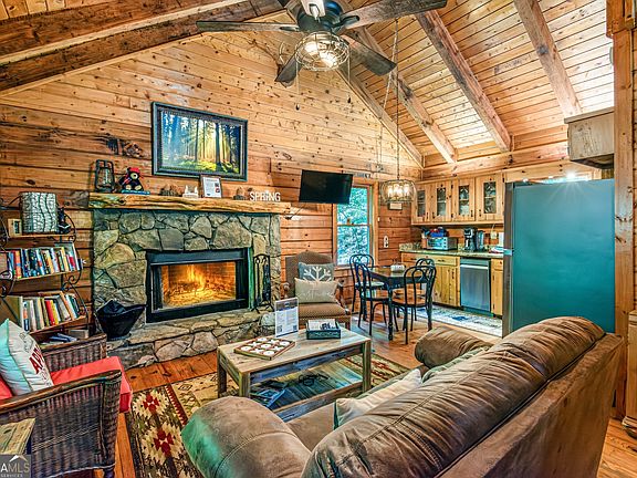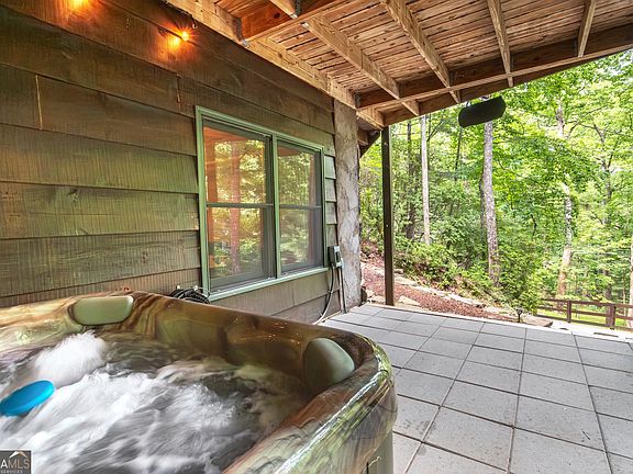 This well-maintained 2BR/1BA cabin in Walnut Mountain is 1200 sq. ft. of charming mountain living surrounded by beautiful forest and would make an awesome vacation home. This country rustic home packs a lot of living space into its layout, with every nook made useful, such as the loft bonus room which is currently set up with a bed. The living room features a vented wood burning fireplace for those cozy winter nights, and the kitchen and dining area are nearby for a close family or social atmosphere. The full basement is finished, with a family / game room, laundry closet, under-stairs closet, and utility / owner's closet. The covered patio has a soothing hot tub, and the main level deck has a table for outdoor breakfasts or dining, with a view of the little stream that runs at the bottom of the property. There is a trail that leads to a sitting area, also with a view of the stream, which is guarded by a (mostly) friendly Bigfoot. Walnut Mountain is a private gated community and offers a lot of amenities, such as a swimming pool, club house, tennis courts, playground, dog park, hiking trails, campground, and access to several lakes.