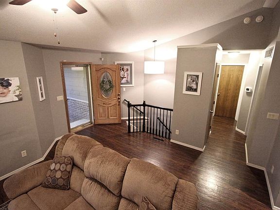 This home is one of a kind in Stratford Place in a quiet cul-de-sac location! The interior is unlike any of the other plans you will see. The interior decor reflects the newly popular "farmhouse" style! Walk into a beautiful entry with custom lighting and hand scraped wood flooring. Open kitchen concept with eating bar/island. All kitchen appliances are included. Dining area with bright sunny bay window and access to the back yard. Bathrooms updated, custom vanity. Master bedroom with full bath, vaulted ceilings and corner window. Spacious double closets. Main floor laundry with storage. Basement is fully finished with two more bedrooms and full bath. Large rec room with separate game area. Would also make a nice space for a bar. The back yard is huge complete with two tier deck, storage shed and privacy fence. Roof new in 2013. Heat and air 7 years old. Special taxes pay out in 2018!