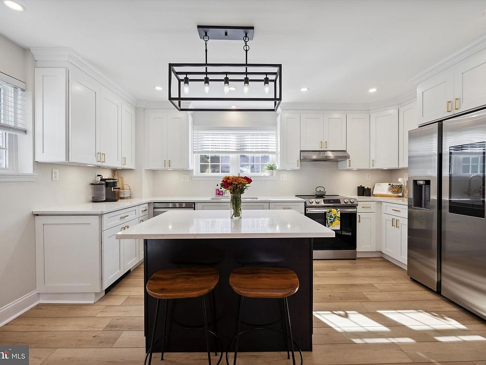 Hard to find, gorgeous two-story brick End Unit in the heart of Conshohocken Borough! Fall in love with the newly renovated (2021) gourmet kitchen featuring a magnificent center island, quartz countertops, professional grade Samsung appliances including a newly installed oven, Samsung fridge, (screen connected to your Ring doorbell so you can see guests before they knock), custom lighting, and expansive pantry. New Windows (2021)! The bright and open floor plan seamlessly connects the kitchen to the inviting living room where overhead lighting was added (2021), refinished h/w flooring (2021), and custom paint (2021). Rarely found newly added (2021) powder room completes the first floor. Head upstairs to find 3 bedrooms, each zoned with mini splits and fully renovated hallway bathroom (2021). New carpets in all the rooms, hallway and runner up the stairway. The entire home has been recently painted. The walkout fully finished basement is perfect for additional entertaining, movie nights or quiet office space. Glass sliding doors open to private and bright backyard that has been professionally landscaped and maintained. New FURNACE (2020), washer, dryer, laundry tub, and more storage space complete the basement. One car garage plus additional driveway parking, walking distance to Sutcliffe park, Septa Regional rail, numerous restaurants and stores, this home truly has it all! Ask for full list of upgrades! Schedule your appointment today!
