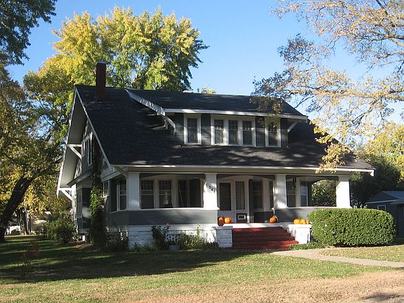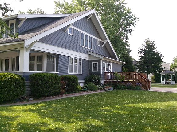 Classic Craftsman construction featuring: - Wide eaves with exposed rafter tails - Shed dormers - Large triangular braces under the side-gabled roof - Deep, full-width front porch Inside features: - Built-in solid oak buffet - Tall oak wainscot and coffered ceiling - Solid oak doors, floors and staircase - Large mantel fireplace 2565 sq.ft. Living Space 4 bedroom, 2 bath completely updated 7 walk-in closets and 1 large linen closet Additional 1620 sq.ft. clean and dry concrete block basement Wood Deck 12x20 Large Corner Lot 142x140 Large 2 car Garage 26x32 Heated Workshop 12x12 Large Patio Underground Sprinklers Gazebo