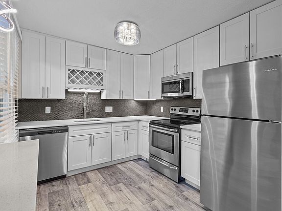 Quartz countertopsCustom cabinetsAmple closet spaceNew modern backsplashStainless steel appliancesPrivate storage lockerReserved covered parking spot
