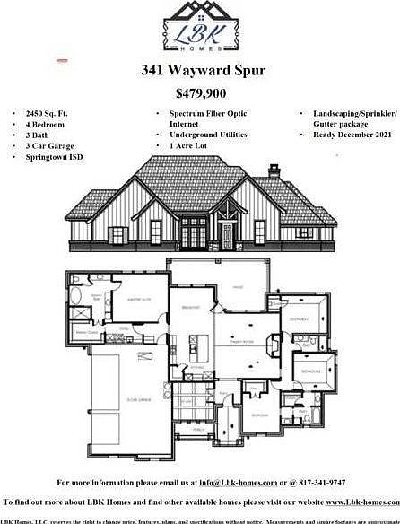 NEW FARM HOUSE DESIGN - Bittersweet Springs comes with Underground Electric, Treed lots , No HOA, No City taxes, Springtown ISD. !This home comes with 4 bedrooms, 3 BATH, 3 Car garage and a dining room. Has a warm open concept. The kitchen is equipped with an enormous island in the center of the kitchen and charming stainless steel appliances. MBR bath is luxurious with the separate sinks, nice garden tub, separate shower and a large walk in closet. Included is a large backyard patio. MAKE YOUR DREAM COME TRUE! HOUSE IS IN THE FRAMING STAGES! GUTTERS AND SOME SOD AND SPRINKLERS AND LANDSCAPE PACKAGE WILL BE INCLUDED! DROP BY AND SEE IF THIS IS THE PLACE FOR YOU!!! VERY CLOSE TO SCHOOLS.