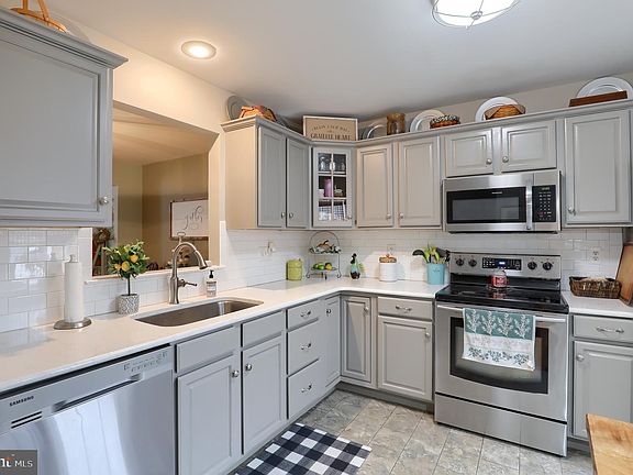 This lovely "Woods Edge" townhome offers 3 bedrooms, 2 full and 1 half baths, 1-car garage, finished lower level with a bedroom, family room, and additional storage areas. A gorgeous renovated kitchen offering stainless appliances, quarts counters, tiled backsplash, and new flooring. Additional features include natural gas heating, central air, corner family room fireplace, newer flooring throughout, second-floor laundry, quaint front porch area, vaulted foyer with a skylight, and a rear deck. This location is extremely convenient to shopping, healthcare, major highways, parks, and schools.