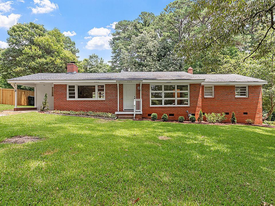 Charming brick ranch with a one car covered carport that is nestled on nearly a half an acre in the heart of Wake County! A traditional floor plan featuring spacious family room/dining room combo with masonry fireplace creating a warm and inviting atmosphere, a formal living room that can be used as a home office, the kitchen is equipped with an abundance of cherry cabinetry, electric range and matching appliances. All the bedrooms are on the same side of the residence, the primary bedroom is enhanced with a private en-suite for convenience, plus two additional guest rooms and a full bath are adjacent. Enjoy the Carolina weather in a fenced backyard with an expansive covered patio and play set! Amazing location in the Blue Ridge Corridor with close proximity to Downtown Raleigh, North Hills, Cameron Village, Crabtree Valley Mall, Crossroads Plaza, and the new Fenton for an array of Shopping and Dining! Also located near the fairgrounds, Carter Finley Stadium, PNC Arena, Drive Shack, RDU, and NC State University!