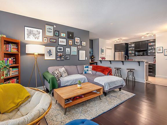 Bright, spacious, 2-bedroom condo in the heart of Marda Loop! Built in a fully concrete building, allowing for virtually no noise from neighbours in any direction! This condo has beautiful large windows, 9-foot-high ceilings, and hardwood throughout. As you walk in, you will be greeted with a large walk-in front closet and open concept living room and kitchen. The kitchen has stainless-steel Kitchen Aid appliances (2021) and front load LG washer and dryer (2021). In the kitchen you will enjoy granite counter tops, a walk-in pantry and large breakfast bar, not to mention the built in Culligan water filter! This is a reverse osmosis water system with a remineralization filter. The large primary bedroom features a walk-in closet and 4-piece ensuite bathroom. The second bedroom includes a large closet and second 3-piece bathroom just off to the side with a stand-up shower. Off the living area there is a spacious balcony with downtown views. This condo comes with a dedicated single, heated, underground parking spot. Plenty of underground guest parking is available, as well as additional street parking. Building amenities include a bike storage room, personal storage locker, and second floor common area. Located right on 33 Ave, you are literally steps away from everything you need - Blush Lane, Shopper's Drug Mart, Safeway, Phil and Sebastian, Starbucks, Village Ice Cream, Cobbs Bread, numerous restaurants, and so much more! You are walking distance to the Glenmore Reservoir, Sandy Beach dog park, and 17th Ave. This truly is an incredible location! Condo comes unfurnished. Heat and water/sewer is included; tenants pay the electricity and cable/internet. Available May 1, 2025. Please note: Photos in this listing are from a previous period and may not reflect the current appearance of the property. Rent is responsible for Electricity, Cable, WiFi, and Tenants Insurance.