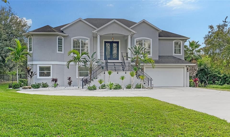 Motivated Seller - All current furnishings included. Welcome to this gated 4-bedroom, 3.5-bathroom, 2-story estate nestled on an expansive 5-acre parcel in the heart of Bradenton, Florida. A gated entry ensures the utmost exclusivity, nestled away from the road for ultimate seclusion revealing a home of sophistication and privacy, offering the perfect blend of luxury and entertainment. The heart of this residence is the impressive 2-story screened-in Lanai, a true entertainment haven this outdoor space invites you to relax and unwind in a tropical paradise. Whether hosting gatherings or enjoying quiet evenings, the Lanai is a versatile space that seamlessly integrates with the indoors. The lanai is completed with an exquisite outdoor kitchen, equipped with a sink, grill and green-egg grill while the fenced-in backyard ensures privacy, making it an ideal space for outdoor activities and relaxation. Downstairs, the entertainment options continue with a built-in bar and additional fridges, seamlessly connecting to the screened-in Lanai. Upstairs on the main floor you will discover a large great room adorned with a cozy fireplace, creating a warm and inviting atmosphere, featuring sliding doors that open to a screened-in second story balcony, offering breathtaking views and a perfect spot to enjoy your morning coffee. The kitchen is a chef's delight, boasting modern updates and stainless-steel appliances, including an ice maker. The adjacent dining room is enhanced by a built-in bar and wine fridge, creating an inviting ambiance for entertaining guests. A spacious walk-in pantry adds practicality to this well-appointed kitchen. The primary suite is a luxurious retreat with its own fireplace and sliding doors that lead to a private balcony connected to the great room. The primary en-suite is equally impressive, featuring a large shower, a separate soaking tub, dual vanities with mirrors equipped with built-in lighting, and an expansive walk-in closet. Working from home is a pleasure in the dedicated office, complete with double doors for added privacy. Guests can enjoy the comfort of a second suite with a full kitchen, stainless steel appliances, a living room with a fireplace, a bedroom, and a full bathroom while fitness enthusiasts will appreciate the convenience of the downstairs gym. Additional upgrades include 3M film on all windows for hurricane protection, laundry on both floors of the home and an extensive premium exterior lighting package in the front and back of the home. The property is zoned for agriculture providing limitless uses. This property is a rare fusion of sophistication, functionality, and seclusion. Live the life of unrivaled luxury in this Bradenton masterpiece—an exclusive retreat where every detail is a testament to refined living. Roof credit with acceptable offer.