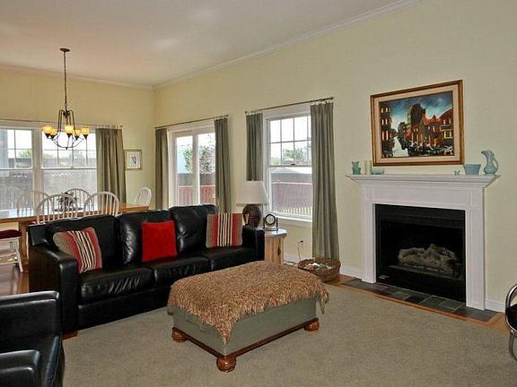 Bigger than it looks! Large rambler with 1738 sq ft on the main floor and another 1738 sq ft in the full finished basement. 10 foot ceilings in the kitchen, formal dining and living room with gas fireplace and crown molding. Kitchen with maple cabinets, and newer stainless appliances. 9 foot ceilings in the 3 beds up including a spacious master suite. Attached tandem 3rd stall insulated garage