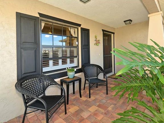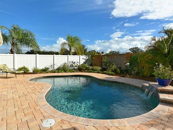 Welcome to the community of Cottages at Blu Vista. This charming home was built by Rinehart Homes. The brand new open air saltwater pool will give you many relaxing days ahead. The pool is surrounded by a beautiful paver deck. The outdoors landscaping is all new and is filled with Florida fruit and flowering trees. This home is in wonderful condition. Ready for you to move right in. You will have hurricane shutters and new hurricane resistant windows in the back. The refrigerator, stove, microwave and dishwasher were all new in 2013. A Termite prevention treatment was done in 2013 with a 9 year renewal contract. Extended warranty on the A/C until 2019. A five stage water filter was installed under the kitchen sink in 2013. Also new gutters on this home. Bring your pickiest clients. This home is for them!