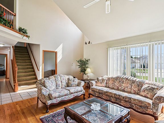 Step into this Amazing custom-built home offering 4 bedrooms and 2.5 bathrooms, designed for both comfortable living and entertaining. The unique floor plan boasts 3218 square feet of living space. Upon entering, you'll be greeted by a striking two-story foyer with beautiful views and a distinctive open riser staircase. The spacious 2 story sunlit living and dining rooms feature elegant hardwood floors, enhanced by floor-to-ceiling windows and vaulted ceilings. A stunning fireplace for those cozy winter nights. The kitchen is well-appointed with quartz countertops and tile backsplash. Open and airy with abundance of natural sunlight beaming throughout the kitchen. It includes a breakfast bar/island, a dining area, a good sized walk-in pantry, and ample space for a large kitchen table. The first-floor master suite is a true retreat, offering a picture window overlooking a serene forest preserve and an open-concept, upgraded spa bathroom complete with a heated and jetted tub, and a separate shower, all beautifully appointed. A half bathroom is located on the first floor for guests. The first floor also features an office with front yard view. The second level contains three additional bedrooms, a very spacious L-shaped loft area with a walk-in closet and view of the backyard greenery, and another full bathroom. One of the upstairs bedrooms can be used as a guest suite with attached bathroom and dressing room. The large unfinished basement features a roughed-in bathroom. This home also features numerous upgrades, including a brand new roof, updated insulated double-pane window glasses, and kitchen quartz countertops (2025). Fresh paint in the living room, dining room, foyer, and office in 2022. Also, the dishwasher, range, both water heaters and washer have been changed. The spacious backyard deck is perfect for relaxing and catching a view of the golf course. The landscaping has been refreshed and ready for outdoor and grilling enjoyment. Don't miss this one, it will not last!