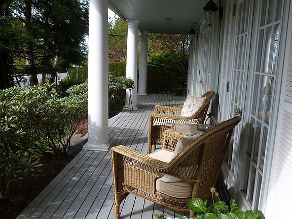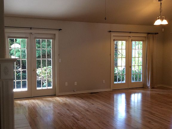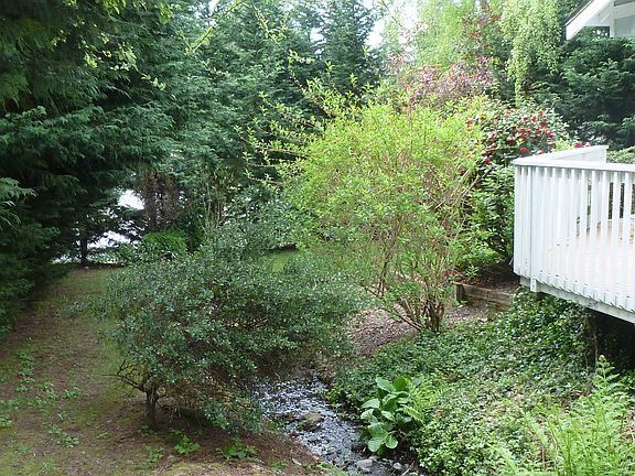 Lovely, well maintained home on a corner lot just minutes away from shopping and walking trails. This open design living includes the Kitchen & Living area with vaulted ceilings, oak floors nice fireplace & 2 French doors to a wrap around deck. Kitchen w/granite tile. Master Bedroom, Master Bath & W/I Closet on Main with French Doors. Upstairs 2 bdrms & bath. Enjoy many BBQ's on the deck in the secluded back yard listening to the trickling of the creek that runs thru the property. Large garage.