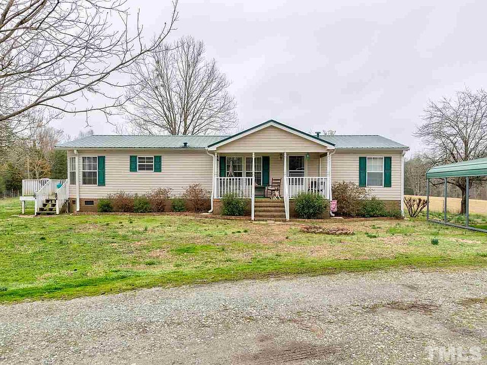 Your own private retreat on 78 Picturesque acres with pastures, 2 stocked ponds, hardwoods, lots of privacy and a running creek. Make this your hunter's paradise, set it up for cattle and livestock (fencing, 2 wells, stable) or call it home and live in your own private retreat. Newer manufactured home with upgraded metal roof and wood flooring. There are multiple outbuildings and variety of fruit & nut trees & grapevines already on site. Mebane schools (Pleasant Grove, Woodlawn & Eastern Alamance)
