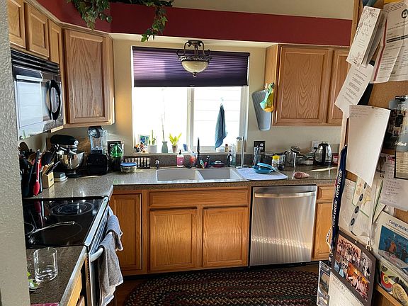 Lovely home with room for all. The views from the home looking over the entire Front Range make sitting in the enclosed 3 season porch a delight. Plenty of room for the entire family, or 2 or 3 room mates. Large master suit with bay windows with views of the front range. attached master bath and walk in closet. second bedroom and full bath upstairs. has a nice office with French doors on the main level, however this can be used as a bedroom as well. All new carpet upstairs. Downstairs are two good bedrooms, the larger with attached full bath. small unfinished area of the basement with laundry service and utility sink and small shop. perfect area for storage as well. Great home that has been well loved and cared for. You must really see the views. 12, 18, 24 month lease available. Tenant responsible for basic yard care and electricity, natural gas, and water. All utilities through Colorado Springs Utilities. Owner pays for trash and HOA fees.