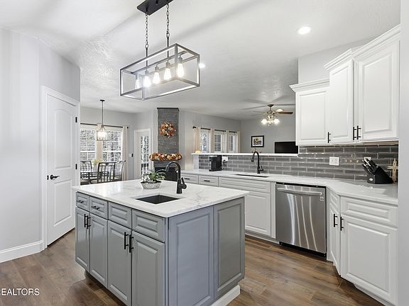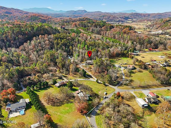 SITUATED ON A SERENE 9.58 WOODED ACRES, this 2,092 sq.ft. ONE LEVEL HOME with a BONUS 1,564 sq.ft. BASEMENT offers exceptional privacy and usability, featuring a 3 CAR GARAGE—2 bays on the main level and an additional garage space downstairs. The home sits on 1.75 acres with an additional 7.83 acres included, giving you your own peaceful slice of the Smoky Mountains. The sprawling wooded acreage provides endless possibilities, with mature trees creating a natural buffer from the outside world, yet you're still only ~20 minutes to Sevierville and Pigeon Forge, ~30 minutes to Gatlinburg, and ~22 minutes to the Great Smoky Mountains National Park. A charming front porch overlooks a level yard surrounded by woods, while the rear of the home also faces the forest for added seclusion. Inside, an office/TV room sits to the right and a formal dining room to the left, leading into an open living area connected to the kitchen and breakfast nook. The kitchen features solid wood painted cabinets, tile backsplash, stainless steel smart appliances, and gleaming dolomite counters. The MASTER SUITE is privately positioned on one side of the home alongside the laundry room, offering bay windows, a walk-in closet, and a beautiful tile bathroom with granite counters, double sinks, and a custom walk-in tile shower. The other two bedrooms and second bathroom, each with generous closets, are located on the opposite side. Gleaming wood floors run throughout, and a stone two-sided fireplace warms both the living room and the breakfast nook. GREAT POTENTIAL IN THE BASEMENT—this heated, partially finished space is plumbed for a third bathroom and framed for a family room and bonus room. Spectrum internet available.