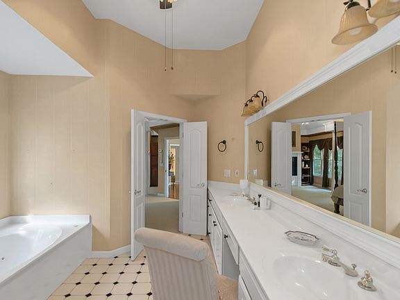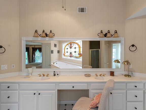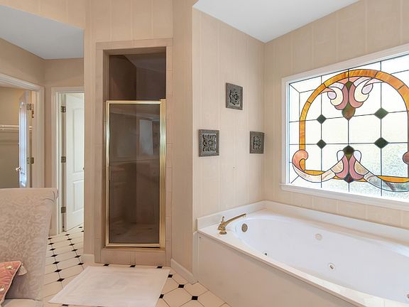 The gourmet kitchen is equipped with rich wood cabinetry, marble countertops, and premium appliances, making it ideal for both everyday living and entertaining. Bathrooms are spa-inspired, featuring jetted tubs, gold fixtures, and custom stained glass accents that add a touch of artistry and luxury. Bedrooms are generously sized and tastefully decorated, offering plush bedding and serene color palettes that create a restful retreat. Living areas are furnished with carefully curated pieces that strike a balance between style and comfort, featuring elegant lighting, custom mirrors, and designer touches throughout.