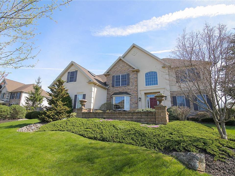 Welcome to Valley Green South, one of the most sought after neighborhoods in Upper Saucon. This premium lot is on a quiet street adjacent to the highly rated Southern Lehigh SD campus. Nearby is a 3 acre park, providing open space w/in the community. Built by Lehigh Custom Homes, this home is every bit elegant as it is functional. Its quality & detail are noteworthy w/ such features as hardwood throughout the 1st & 2nd floors as well as upgraded trim. The kitchen is truly a delight, featuring Subzero and Viking appliances. The sunken family rm w/ gas fireplace is warm & inviting. The master suite boasts his & her walk-in closets, a spacious bath, & a versatile bonus rm. Two bedrms sharing a Jack & Jill & a Princess suite complete the upstairs. The finished basement, w/ a unique epoxy stone floor, is simply stunning. And possibly best of all, you’ll love all the exterior hardscapes & landscapes, especially the outdoor living space, complete w/ a wood fireplace under a Pergola canopy.