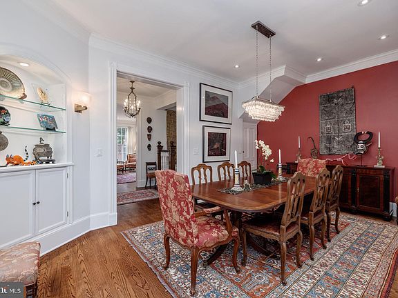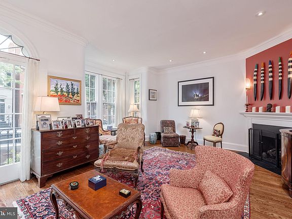 This prime Georgetown property is situated on a beautiful, historic block in the West Village. Just steps away from M Street and close to Wisconsin Avenue, it has easy walking access to all the high-end shops and fine dining the neighborhood has to offer. This bright, semi-detached house is the epitome of a discriminating buyer’s wish list with natural light streaming in from three sides throughout the home, a two-car garage, two-level living, and architectural authenticity. Original floors, high ceilings, and lovely moldings add to the home’s original character while serving as a wonderful setting for contemporary art and furniture. Tasteful renovations and updates have been thoughtfully incorporated throughout the home and include a family room overlooking the beautiful, cultivated garden that surrounds the patio and lines the walkway from the front sidewalk. The main level opens from a covered side entrance to a generous entry hall, with coat closet, that opens to a large living room with an oversized bay window with window seat, French doors with a Juliet balcony and leaded fantail detail, built-ins, and a ventless gas fireplace with marble detailing. The formal dining room on the right of the front door features elegant details, including a built-in corner cabinet, large window, and a sizeable contemporary chandelier. The gourmet kitchen is equipped with stainless steel appliances, including a six-burner Wolf range, a Ventahood vent, a Sub-Zero French door refrigerator/freezer, a Bosch dishwasher, an Asks dishwasher, and a Beko built-in microwave. It also has granite countertops, and a marble backsplash. The attached family room with powder room is perfect for relaxing and entertaining, with built-ins and two sets of double French doors leading to the private back garden. The garden has a herringbone brick terrace, mature plantings in raised beds including crepe myrtles and dogwood trees, and Rain Bird irrigation and Alliance exterior lighting. Upstairs, the grand primary suite boasts multiple windows with window seats, built-ins, and closets, including a separate walk-in closet. The primary bath features dual vanity sinks, a frameless glass steam shower, and a separate soaking tub. The second bedroom, currently used as an office, has built-in shelves and an en suite half bath. The third bedroom, currently used as a beautifully designed library, has a bank of west-facing windows with a dramatic 96 panes of glass and built-in bookshelves as well as a walk-in closet. The fourth bedroom, on the corner, has built-in bookshelves, and is flooded with light from west and south-facing windows with a full bath next door. A recently renovated lower level adds a guest suite kitchenette with small refrigerator and small freezer, a full bath, a washer/dryer and laundry area with ample storage cabinets and shelves, as well as a room that can become a bedroom. Beyond the garden terrace is a full-sized, two-car garage with additional built-in storage and alley access from 34th and 35th Streets. Next to the garage is a dedicated garbage area with space for six full-sized trash cans for everyday ease separated by a gate from the patio. Nearby Volta Park, with its pool and tennis courts, is a wonderful green space, and the house is conveniently located with easy access to Trader Joe’s, Whole Foods, and a Safeway grocery store. The Key Bridge, Georgetown University, and both Reagan National and Dulles International Airports are easy to get to as well.