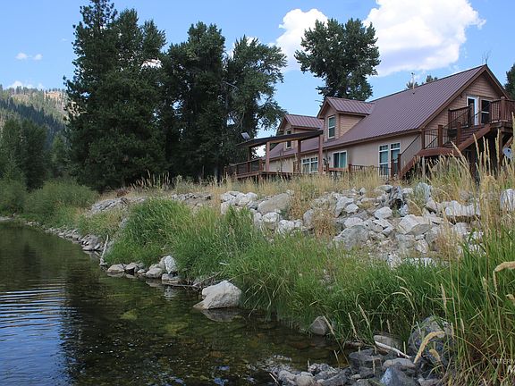 Back on the market and price reduced! Relax on the back patio while listening to the sound of the South Fork of the Boise River and take in the excellent views of Trinity Mountain. This two story home allows you can do just that. A well thought out floor plan that includes an office, living room, dining room, kitchen and a big recreation room with kitchenette and upper deck. Nice enhancements like ceramic tile flooring and counters, top of line hood fan and other appliances in the kitchen, dual sided gas fireplace, and oversized windows just to name a few. The expansive lower deck has a hot tub as well as a fire ring and built-in seating. The 40± acres that comes with the house has timber, live water, and some sub-irrigated area, making it a natural habitat for the local wildlife. You can't find a better location to get away and have outdoor recreation - fish off your own deck; take a hike, ATV, or horseback ride into the mountains; visit a natural hot springs, or boat on Anderson Ranch Reservoir. The house