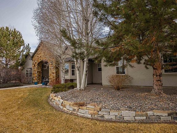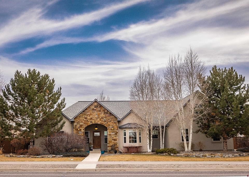 Stunning ranch style home in American Village! This property is located on a spacious corner lot across from the grass park. The home is surrounded by lush landscaping with year round blooms. Welcoming entryway and a floor plan designed to entertain. Open living room with vaulted ceilings, including a gas fireplace surrounded by book shelves. Oak hardwood flooring and tile throughout. Hydronic radiant floor heating, air conditioning, and solar system for energy efficiency living. The kitchen is the heart of the home with custom hickory cabinetry and ample space. The microwave and dishwasher were replaced in 2023 and new faucets throughout. Generous primary suite with an on-suite bathroom featuring a jetted soaking tub and shower, double vanity with tile finishes and a walk-in closet. Bonus room upstairs with an additional bathroom, perfect for guests or a media room. Home is wired for surround sound inside and out. Inviting covered back patio essential for entertaining. Spacious fully fenced backyard with apple trees, raised garden beds, trumpet vines and fruit bushes (raspberry/lavender). Established side area for hot tub or fire pit. Oversized 2 car garage has a corner built in work bench with storage cabinets and a sink. The fenced concrete paved RV storage area offers full hookups. Shed for additional storage. Take the opportunity to see this beautiful home today!
