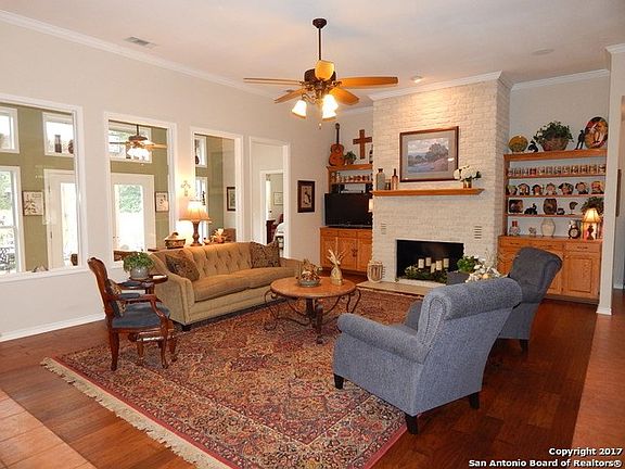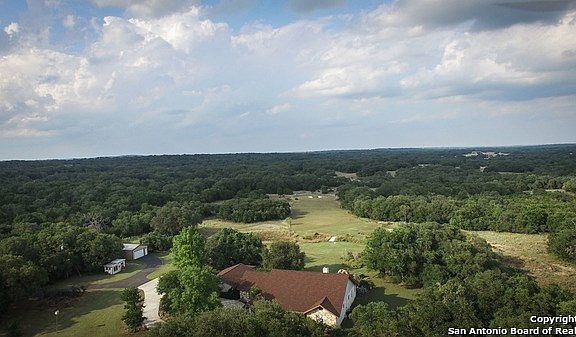 Beautiful gated entry w/paved driveway leads you to this amazing hill country retreat. Tons of gorgeous oak trees located on 20 acres with 2 metal workshop buildings, attached guest house, bunk house (second guest house), RV parking, 2 car garage. Flexible floor plan. Close to Gruene, New Braunfels, Canyon Lake, San Marcos and Wimberley. Don't let this one slip by. Owner will have golf cart available if you want to tour the carefully placed driving tees and putting greens. Go to virtual tour for more photos.