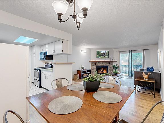 Wow! Turn-key, ground level ready for you! Spacious and well designed two bedroom two bath unit. No stairs. Warm and welcoming family room complete with stone hearth, mantle and wood burning fireplace for cozy fall evenings. Also has a bonus covered patio. Functional kitchen with newer dishwasher. Bonus freezer and dining table included if you want them. Dual master concept each with its own dedicated bath. First bedroom has its own private covered patio. Primary is large and comes complete with en suite bath and walk-in closet. Private laundry room with newer washer and dryer included. Awesome quite location. Walking areas complete with creek and pond. New furnace, sliding doors, windows, washer, dryer, and dishwasher. Hurry! This one won't last. Buyer to verify all.