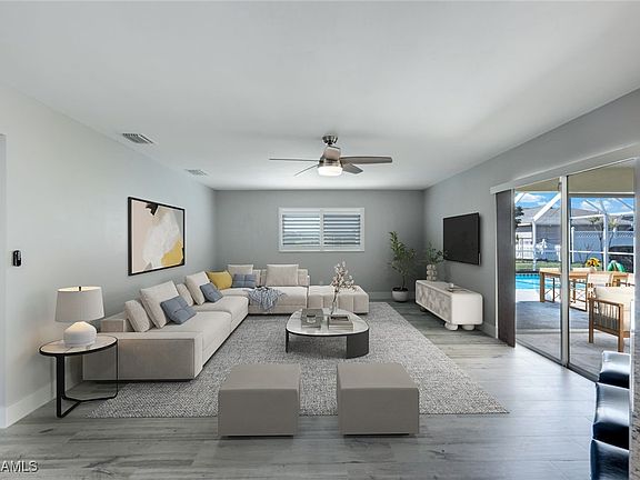 Easy To Show - Completely Remodeled Pool Home centrally located off Country Club. This home has everything done for you, just move right in and start living the Florida lifestyle! Hurricane-rated windows, flooring, remodeling kitchen and baths, and more! Featuring 3 Bedrooms 2 Full Baths and 2 Car Garage with hurricane garage door (2017) and garage door screens (2023). Step through the remodeled front entry with a modern front door. This home offers an open floor plan featuring porcelain plank flooring, tray ceilings, plantation shutters, and views of the pool out of the sliding glass doors. The spacious kitchen has been redone with white shaker cabinets, stainless steel appliances, and beautiful granite counters. There is a dining area open to the kitchen or enjoy a casual meal with bar-top seating for 4. Primary Suite has lots of windows and plantation shutters filling the room with natural light. The primary bathroom was completely redesigned and done in 2020 with spectacular counters, tiles, new cabinetry, and an oversized walk-in shower. Even a walk-in closet with custom shelving was done during the remodel! The spare bedrooms are large and can accommodate king/queen size beds, perfect for families, guest rooms, or a home office. Step out to your patio and lanai with a solar-heated pool, private backyard, and Western Exposure for daytime sun on your pool plus sunsets in the evening! This deck is roughly 15x30 with lots of space to sunbathe, BBQ, and just relax. Hurricane accordion shutters were installed on the lanai for extra protection. This home is meticulously maintained and thoughtfully done with style, flow, natural light, modern amenities, and storm protection in mind. With the roof done in 2022, Miami Dade Hurricane-rated windows, doors, garage doors, and shutters enjoy protection, quiet, and energy efficiency year-round plus savings on insurance. This home has never flooded during any storm. BOATERS - located near many boat ramps for fishing, beaches, and waterfront destinations! Located in the desirable SW close to shopping, dining, events, Starbucks, Target, Publix, and the area’s top-rated restaurants. GOLFERS - Very close to Palmetto Pines Country Club and Coral Oaks. BUY WITH CONFIDENCE Hurricane Impact Windows & Doors, a new home with the latest building codes and standards. Near many of Cape Coral's newest development and community projects like the Yacht Club, Bimini Square, The Cove, and Slip Away for even more fun things to enjoy!