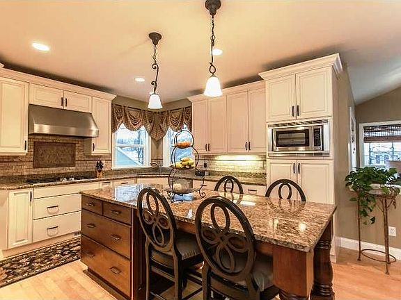 This gorgeous home is a cooks dream with a beautiful custom kitchen with gas stove and double ovens, stainless steel appliances, and a large granite island for easy entertaining, and family gatherings.There is a large main floor laundry room with washer and dryer, and also a stackable washer and dryer in the huge walk in closet in the master suite. The master bathroom has a vanity, and two headed walk in tiled shower. The lower level of this home is finished, and has a bar and kitchenette with granite counter, also 10 foot ceilings, and is a walk out. Home has a three car oversized garage, attached storage shed with footings, and professionally landscaped back yard and patio. This home is a must see!