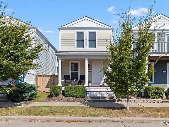 Experience the NEW TOWN LIFESTYLE in this charming 2-story cottage with OPEN CONCEPT floor plan, FINISHED LOWER LEVEL and detached GARAGE. Tree-lined street in QUIET EASTERN SECTION of community near pickleball and Greensmith Park. Classic curb appeal with COVERED FRONT PORCH, columns, upscale fiber cement siding with shake detail. Bright great room with water-resistant luxury vinyl plank flooring. Eat-in kitchen with RICH WOOD cabinets, peninsula bar with double sink, tile backsplash, STAINLESS APPLIANCES with smooth-top stove, and storage PANTRY. Step out to PRIVATE PATIO and fenced yard - ideal for entertaining and gardening. Main floor powder room with pedestal sink. Upstairs 2 bedrooms share full hall bath with tub/shower combo. Convenient 2nd floor laundry enclosure for stacking units. Downstairs is finished with a FLEXIBLE REC ROOM, built-in cubbies, recessed lights, 3rd bedroom and 3rd bath with shower. Detached 1-car garage with alley access. Amenities: pool complex, beach, stocked lakes for fishing/swimming/boating, scenic parks, quaint shops, restaurants, playground, amphitheater events/concerts & more. Easy access to Highways 94/370 in AWARD-WINNING SCHOOL DISTRICT.
