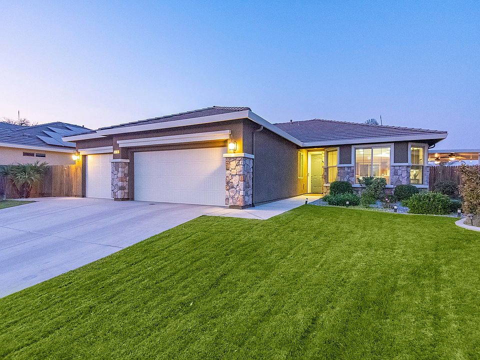 This beautiful home has been meticulously cared for and is move in ready! Three bedrooms and a spacious office off the Master bedroom (which could be a 4th bedroom),give this home versatility. There is an island kitchen with gorgeous granite counters, stainless appliances and an inviting nook to accommodate either a table or comfortable chairs to enjoy the natural light and a coffee! The open Great Room and main areas and traffic areas have upgraded tile floors with carpet in the bedrooms. Fall in love with the large covered patio and beautiful pool. This property offers indoor and outdoor living and entertaining spaces as well as framed garden beds on the side for the plantings of your choice! All this and a three car garage! Don't miss this opportunity to make this yours! FYI-No Sign on Property