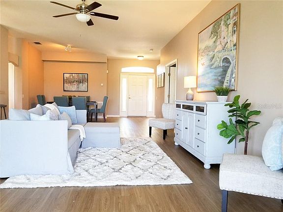 WATERFRONT & New Roof Going Up Soon! Beautiful 3 bed/2 bath Carillon Lakes Care Free Life Style Home with open floor plan with new flooring throughout. Large open living room with dining room area has sliders going out to screened in porch overlooking the pond. The large kitchen has new stainless steel appliances including a gas range and large eat-in area with sliders going out to back screened porch overlooking the water. The large master suite with new flooring includes a spacious master bathroom with double doors, His & Hers walk in closets, double vanities, garden tub and walk in shower. In the front of the home there are Jack and Jill bedrooms with all new flooring with full bath in between with tub/shower combination. The 3rd bedroom has double doors and can be used for an office or den. This community has so many amenities but please check with HOA for updates. Close to I4, Publix Headquarters, Disney, Orlando and Tampa. Currently HOA includes gated community, lawn mowing, cable/internet, clubhouse, basketball, pickle ball, fitness center, outdoor pool & spa, walking & biking trails, and more! 24/7 staffed gatehouse. Water Heater - newer (2 years old). A/C original and new roof going up soon.