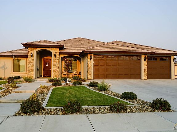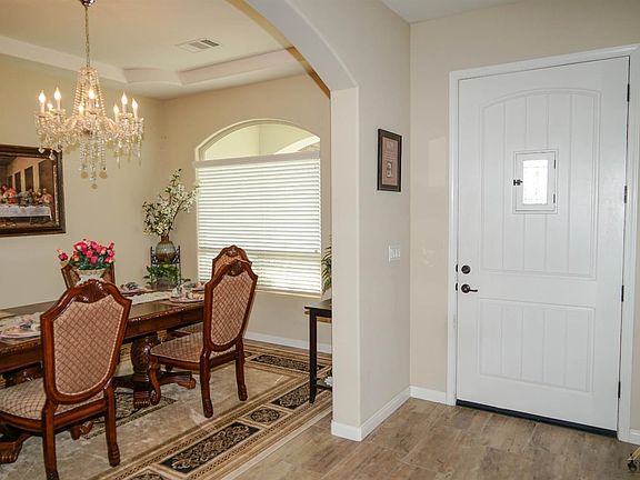 SHOP! Detached custom built shop by builder. Huge RV parking with dump station. Cement block wall around entire sides and back yard. Custom built by Rick Pratt, in 2017. This superb construction has approximately 2795 square feet of class and comfort. Offering 4/3 bedrooms or office. A large Master Suite awaits with an additional sitting/bonus area. En suite bath includes a large tub, separate shower, and two walk-in closets! Elegant Formal Dining, with sparkling chandelier, next to a beautiful, large entry way. Quality wood-look porcelain tile throughout, with carpet in bedrooms. Coffered ceilings. Interior walls wired for alarm/camera. Beautiful high quality, soft close cabinets throughout the home. Elegant double barn door in entry to office, unique closet/utility area. Area in hall for storage or entertainment equipment. Also includes stick built shed! Too much to list. 3 car garage, Huge covered patio, custom shed, water fountain!